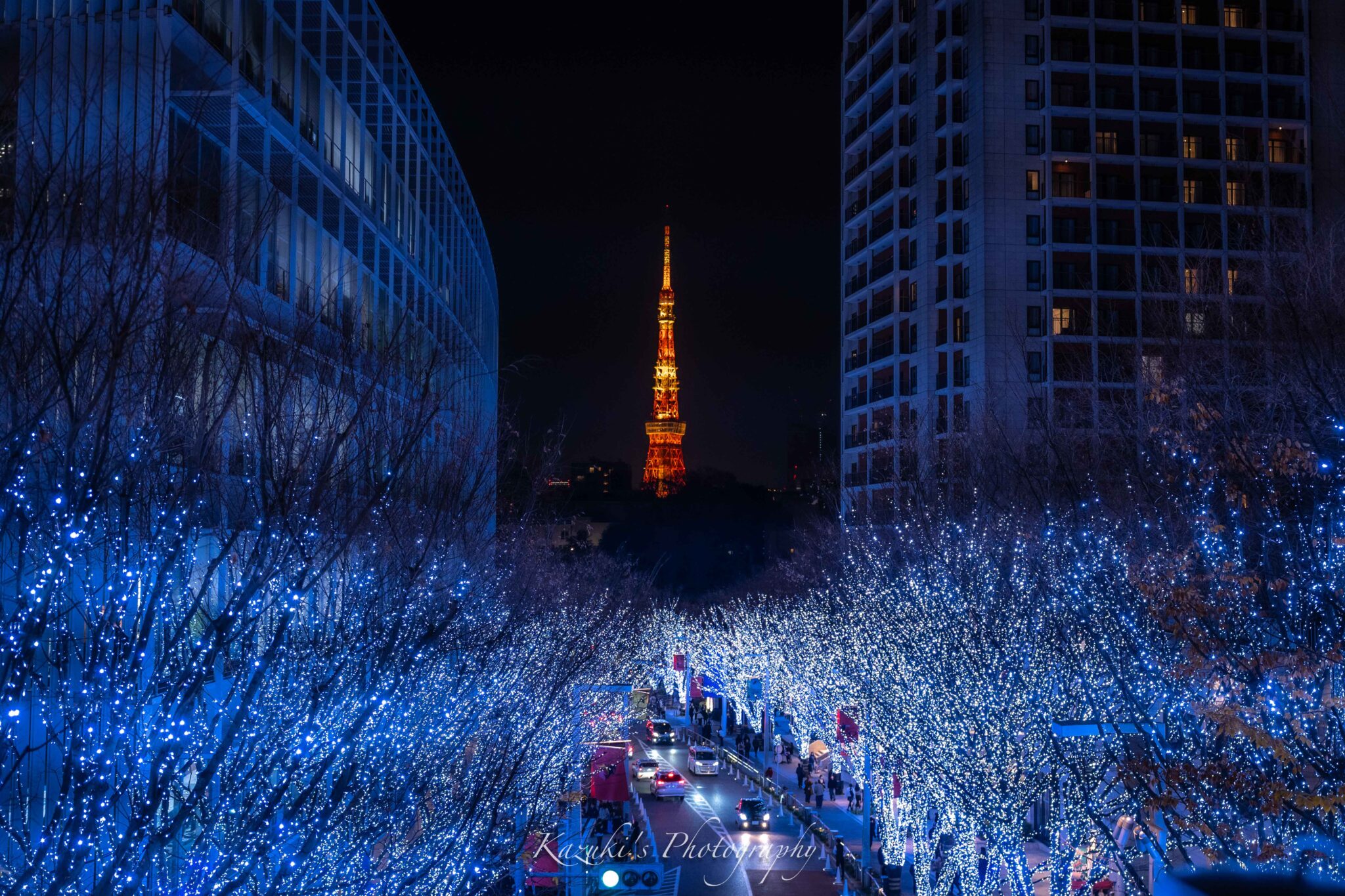 このけやき並木に飾られたイルミネーションと、通りの向こうに見える東京タワーはまさに東京景観の絶景であり、個人的には東京で最も美しいイルミネーションスポットです。