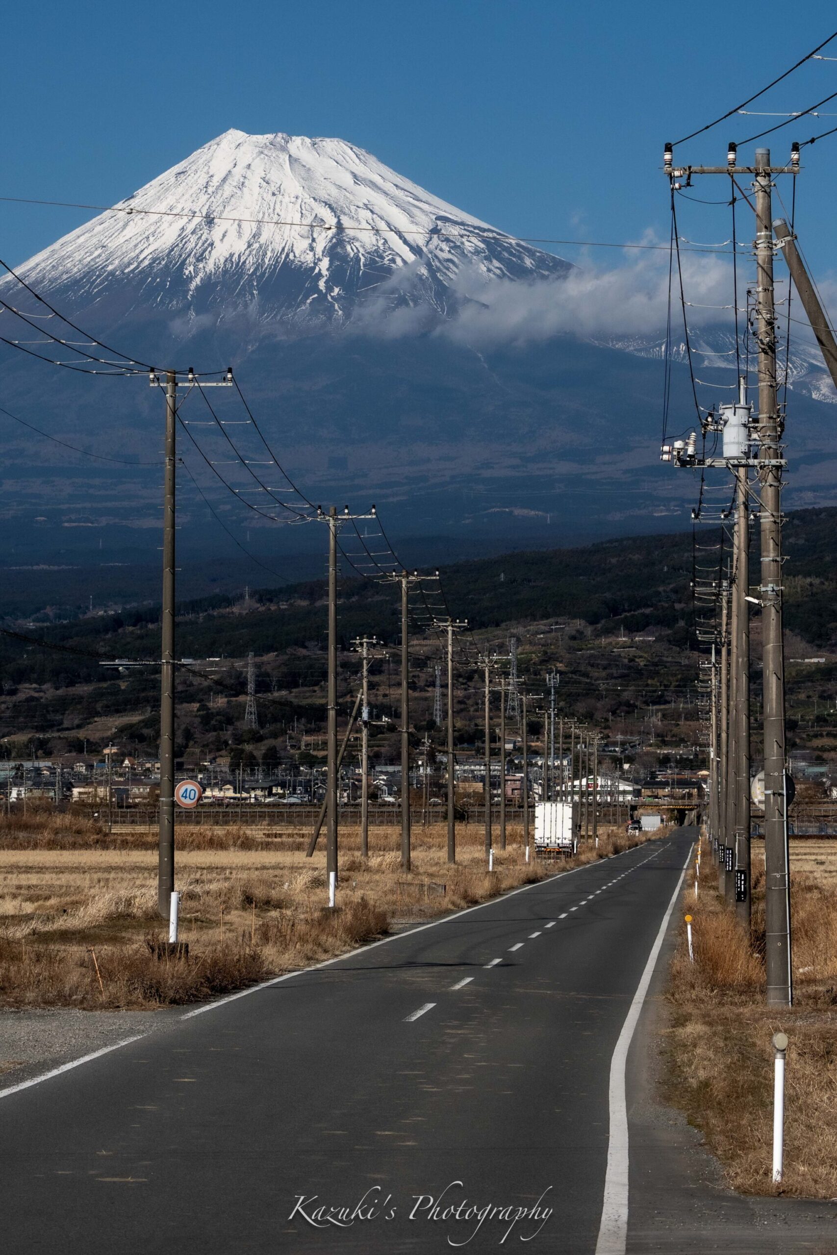冬の青空にくっきりと見える富士山。